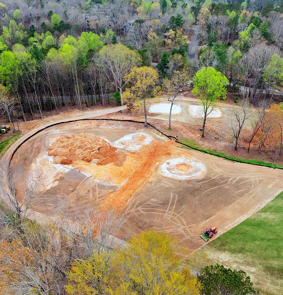 This project is essentially complete! Now we just need a grow--in season. We hope that you have enjoyed these progress photos. The latest photos are from November 2024 and show the course essentially completed.